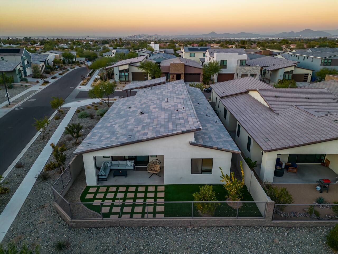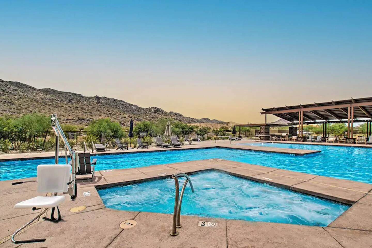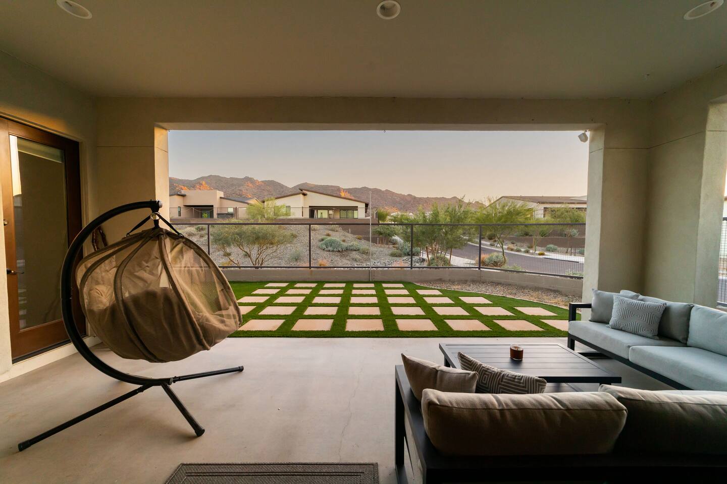 Enjoy this NEW LUXURIOUS Beautiful 3 bedroom house with resort style amenities. Nestled snug into South Mountain, this home is just 20 minutes from Downtown Phoenix/Tempe while being bordered by beautiful mountain trails! The house is fully stocked with the necessities, and beautiful turf for everyone to enjoy! From the Hiking Trails, Heated Pool, Hot Tub, Gym, Fire Pit, Bidet, Mountain Yoga Pad, and Ping Pong, with the fastest wifi, you will NOT want to leave this Home!