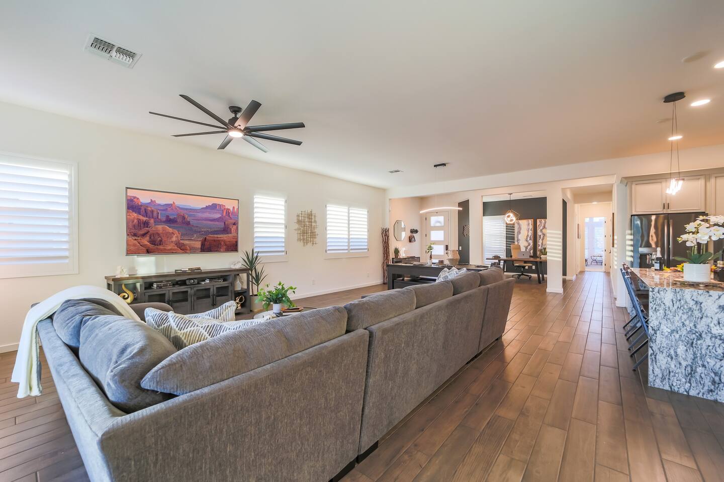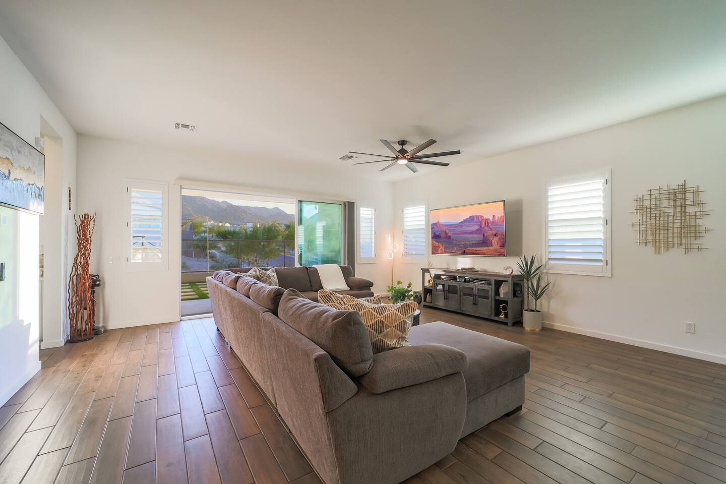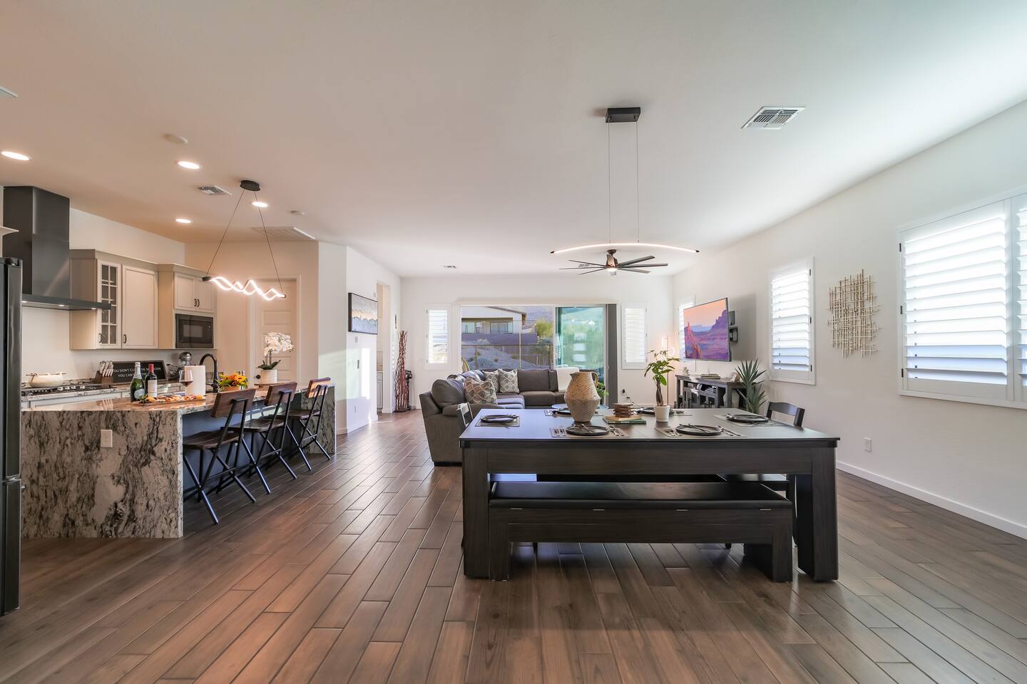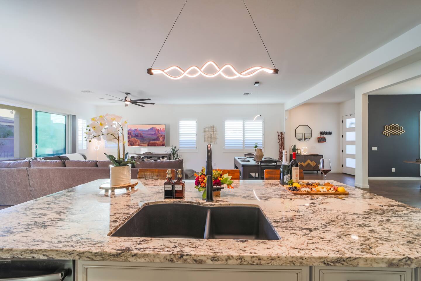 This home was designed to be simple, comfortable, luxurious, quality, and modern. Each piece was purchased and placed with a purpose. Our family loves this home and I believe that can be felt in this space. Many happy mornings have been spent sipping on warm coffee and tea while admiring the humming birds and the majestic South mountain. Many evening were filled with peace as we watch the mountains get painted with the sunset colors. This home is a true representation of our longing dream to live next to this Arizona mountain, and we love sharing it with you. The home and the neighborhood has a very modern feel, but it has warm touches with the wood accents, plushy throw blankets and warm lighting. We know you will find some much needed relaxation during your stay in the South Mountain Luxury Retreat.