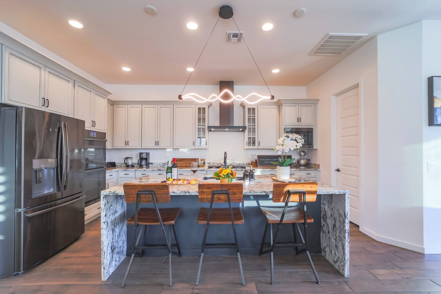A lot of time and effort was put into finding highly rated, quality mattresses that way everyone can feel comfortable. As a luxury addition, we bought genuine goose down duvet inserts for plushy comfort and warmth. Every room has two wireless phone chargers, and a sound machine for those who like to fall asleep to relaxing rainforest, storm, waterfall, or lullaby music. We made sure to provide all utensils, pots, and pans to ensure you are equipped with all you need to make this your temporary home. We also provide the following: Ninja blender, kitchen Aid standing mixer, food scale, food temperature probe, charcuterie boards and cheese board utensils, electric wine opener, wine glasses, electric water kettle, coffee maker, toaster, air fryer, sharpened knife set, 4 ThermoFlasks for hikes, 16 large plates, 16 small plates, 16 bowls, 16 coffee mugs, and plenty of chopsticks. Phoenix Permit STR-2023-002155